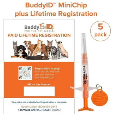 BuddyID® Complete Pet Protection System takes pet protection to the next level! Complete Protection includes a Lifetime Registration and a BuddyBadge®, a QR Collar Tag that makes registering and recovery easier than ever. Just scan the tag and follow the instructions! The microchip will be automatically registered and the QR tag will be linked to the microchip registration for LIFE!